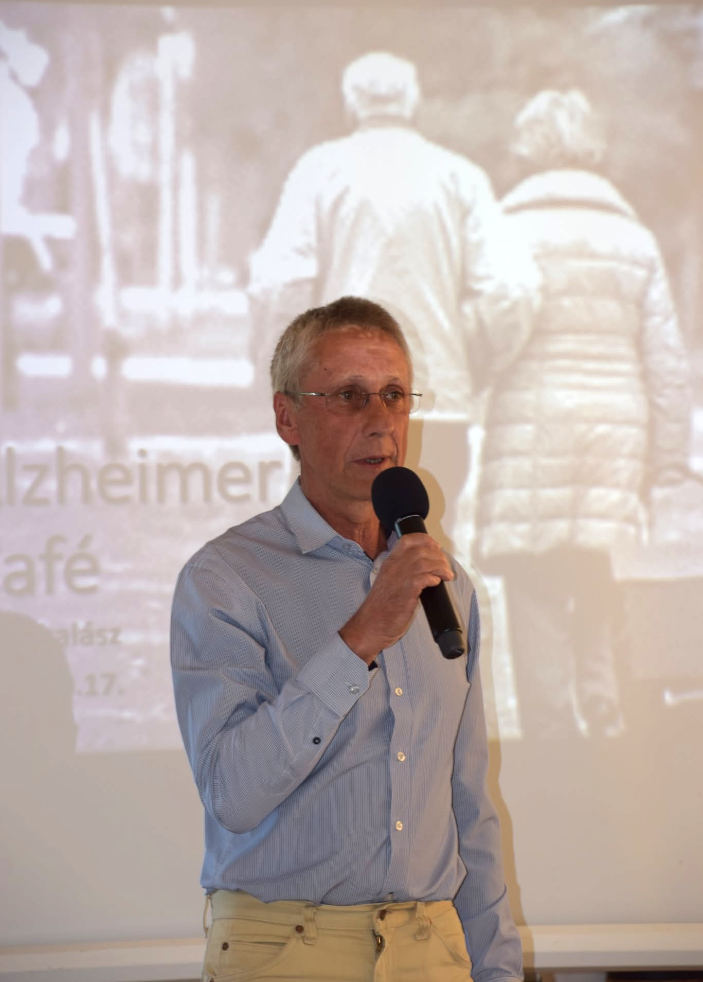 Az alkalom elején dr. Göbl Richár ideggyógyász, a program szakmai védnöke pár gondolatot osztott meg a megjelentekkel rámutatva arra, hogy az orvostudomány fejlődésével nem a fájdalommentes időskor a cél, mint az újkorban, amikor a demencia korai leírásáról megemlékezik a tudománytörténet, hanem ennél sokkal több. A kutatók eredményesen dolgoznak az Alzheimer kialakulásáért felelős agyi fehérjelerakódások elleni gyógyszeren, de egyelőre még csak várjuk, hogy gyógyíthatóvá váljon a demencia leggyakoribb kiváltó oka. Mint elmondta, az orvos szerepe a diagnózis felállításáig tart, ami bár nagyon fontos, de sajnos Magyarországon ez után a beteg ellátása leggyakrabban a családokra hárul.