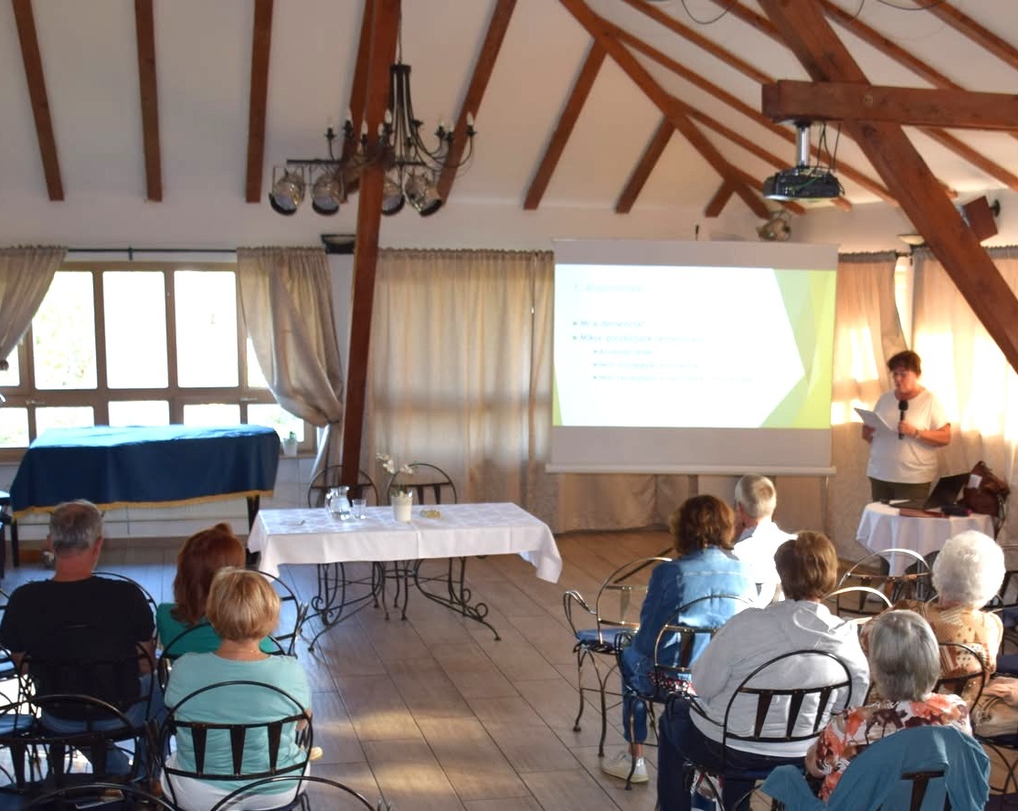 A meghívott előadó, van der Meer Kinga, a Katolikus Szeretetszolgálat XXIII. János Otthon intézményvezetője korábban már járt nálunk. Tegnap kifejezetten az ápolási praktikákra és a célravezető kommunikációra helyezte a hangsúlyt. Kiemelte, hogy nem csak a beteget, a betegséget is el kell fogadni. A kommunikációban a legfontosabb az elvárások elengedése. Egy középsúlyos stádiumban lévő betegnek csak eldöntendő kérdéseket tegyünk fel. A mit szeretne enni?-n elakadhat, de a csirke vagy tojás már egyszerűbb helyzet és kevesebb frusztrációval jár. Ha el kell indulni valahová, a felkészülést bontsuk részleteire, először a cipőt kell felvenni, utána az autóhoz kell lemenni, aztán be kell ülni, utána elindulni. Ha a lakásban azzal kezdjük, hogy megyünk a parkba autóval, lehet, hogy összezavarjuk. A szakember a szemkontaktus fontosságára is felhívta a figyelmet, illetve arra, hogy a testbeszédet, mimikát jobban érti a beteg, mint a mondatokat, így érdemes úgy beszélni hozzá, hogy mindig lásson minket.