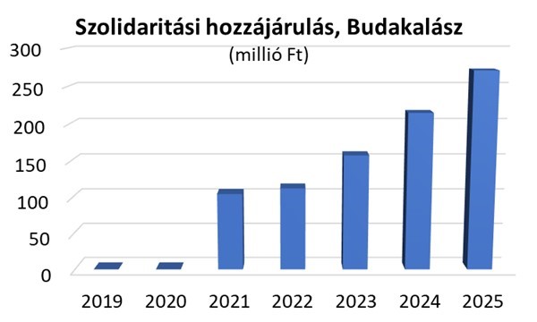 A Budakalászt 2021 óta terhelő szolidaritási hozzájárulás az elmúlt évhez képest 26,2 százalékkal 271,2 millió forintra emelkedik.