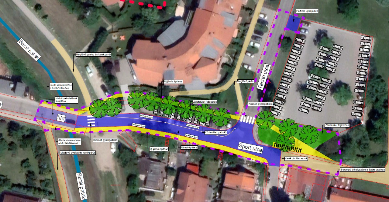 A Tanító és Sport utcák találkozásánál a Barát-patak hidja és kerékpáros-gyalogos tengely csatlakozása a gyalogosok, kerékpárosok és autósok számára szintén régóta körülményes és balesetveszélyes. Ennek megszüntetése a közeli közintézményt látogató családok miatt is szintén régóta sürgető feladat. Eddig megoldatlan volt a Sport utca déli és északi oldala között a biztonságos gyalogos és kerékpáros forgalom átvezetése is. A kerékpárosok mellett a gyalogosok is az úttesten közlekednek, figyelmeztető jelzések nélkül, több ponton is keresztezve a gépjárműforgalmat. A terület közvilágítása sem megfelelő, a Barát-patak és a Kahl am Main sétány közötti parkolás pedig rendezetlen.
