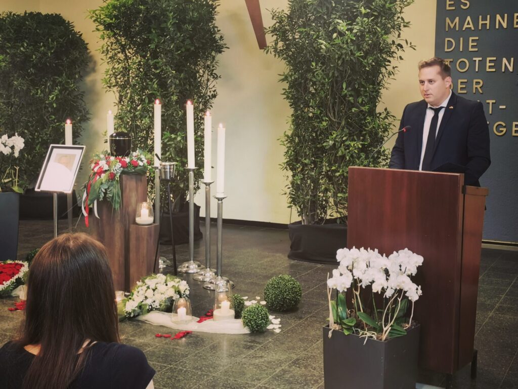 A ma délutáni németországi eseményen részt vett Kutas Gábor, a Budakalászi Német Nemzetiségi Önkormányzat elnöke, Zieba Marianna, a Budakalászi Német Nemzetiségi Egyesület elnöke és Scherer Péter, a Budakalászi Német Nemzetiségi Egyesület elnökségi tagja is. Forián-Szabó Gergely polgármester a temetőben megjelent családtagok, ismerősök és emlékezők számára megfogalmazott gondolatait Kutas Gábor olvasta fel a gyászoló egybegyűlteknek. A búcsúztatással egyidejűleg a budakalászi Szent Kereszt Felmagasztalása Templomban Varga Zoltán atya gyászmisét tartott a híveknek az elhunyt emlékére. A mise után a budakalászi német közösség tagjai lerótták tiszteletüket a Budakalászi Kitelepítési Emlékmű előtt is.