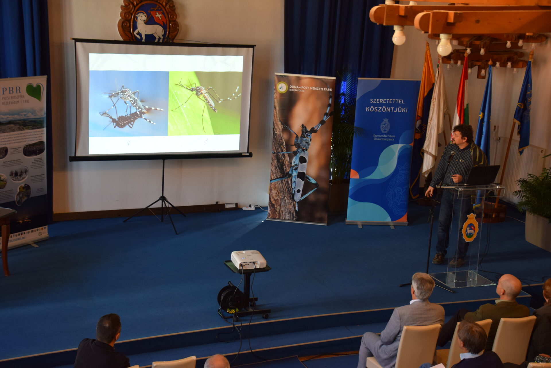 A többi téma mellett nagy hangsúlyt fektettek az invazív, azaz gyorsan szaporodó és az őshonos élőlényeket kiszorító fajok elterjedéséről, az ezekkel szembeni védekezés lehetőségeiről folytatott párbeszédre. Dr. Soltész Zoltán, a HUN REN Ökológiai Kutatóközpont kutatójának előadása apropóján a résztvevő polgármesterek megosztották egymással a településeiken alkalmazott szúnyoggyérítési technikákat.
