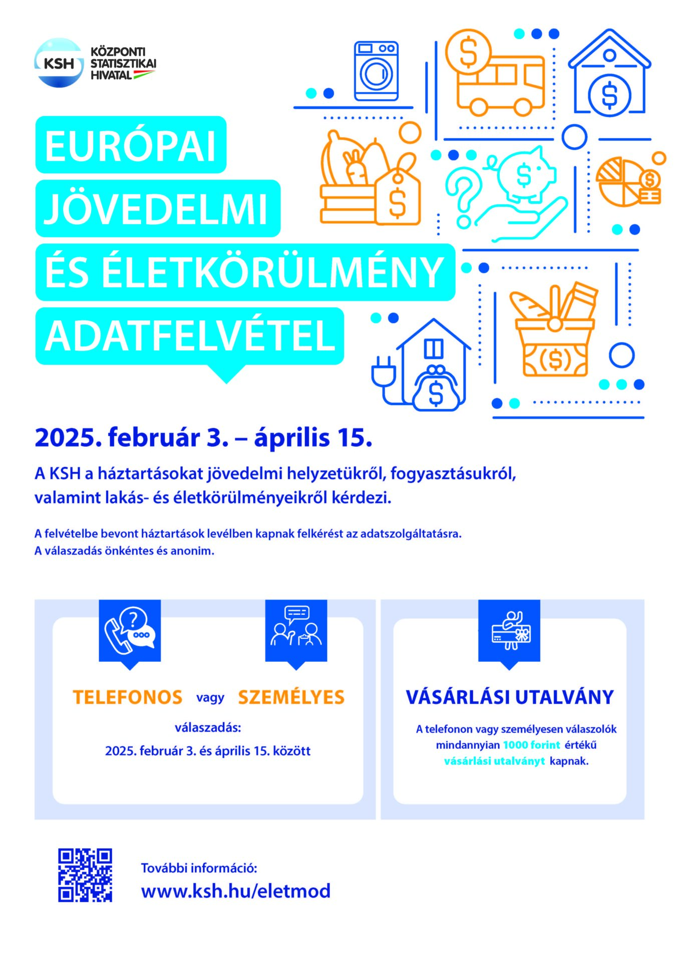 Az adatfelvételekből származó eredmények nélkülözhetetlenek a magyar társadalom jellemzőinek feltérképezésében. A válaszadásra az ország különböző településein véletlenszerű mintavétellel jelölik ki a háztartásokat. A kapott adatokat a vonatkozó jogszabályok és előírások alapján bizalmasan kezeli a KSH, az eredményeket név és egyedi adatok nélkül, összesített statisztikai táblázatokban közlik. Az adatfelvételekről további információ: www.ksh.hu, illetve a lakinfo@ksh.hu címen, telefonon és munkaidőben pedig a +36 80 200-766 számon kérhető.
