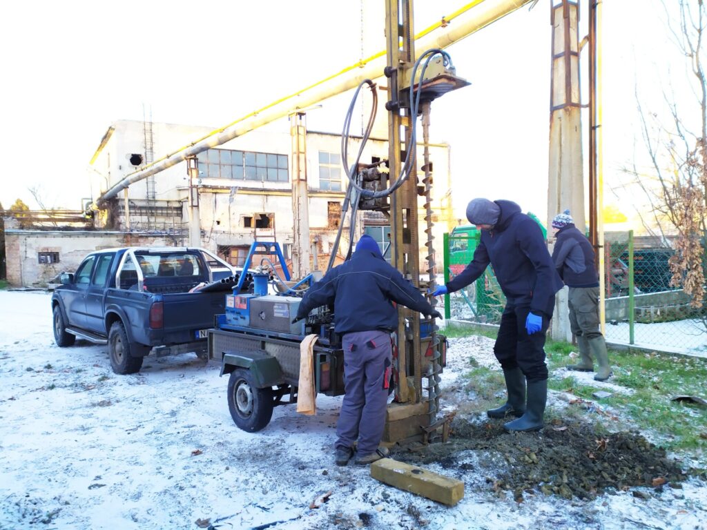 Talajvizsgálat az egyik mintavételi ponton 2021 januárjában. Kép forrása: Budakalász Város Önkormányzata.